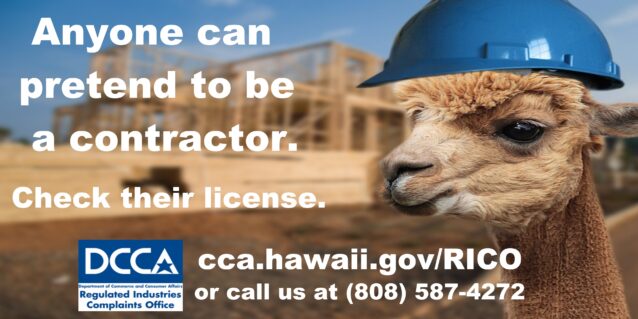 √ CHECK if your contractor is licensed in Hawaii by the Contractors License Board